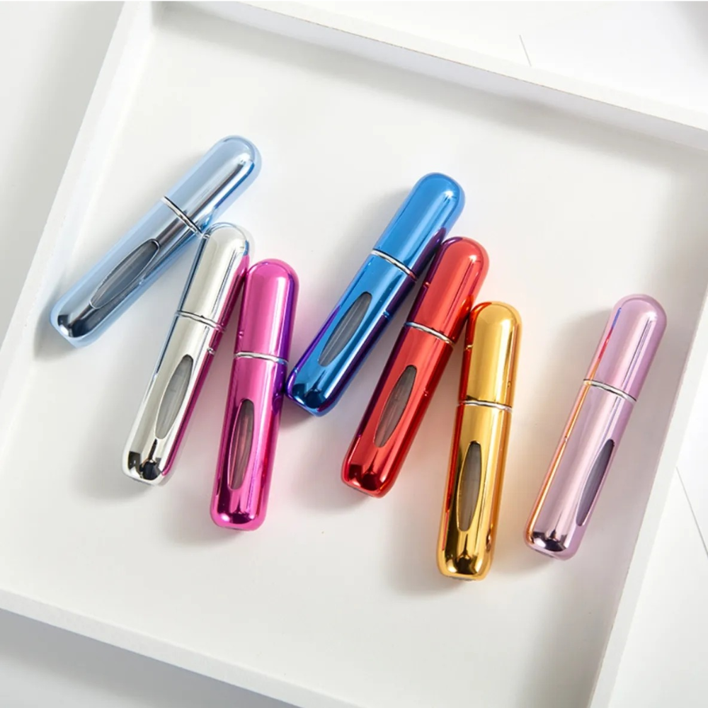 Perfumeros de 5 ml, compactos y prácticos, ideales para transportar tus fragancias favoritas cómodamente a donde vayas.